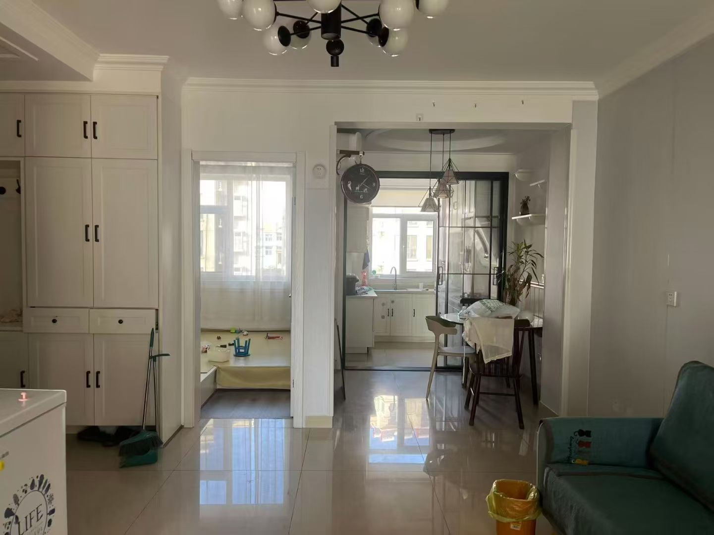曙光小区98平两室精装,南向阳两个卧室,北客厅,家具家电齐全,拎包入住,蜊江中小学上学方便,核