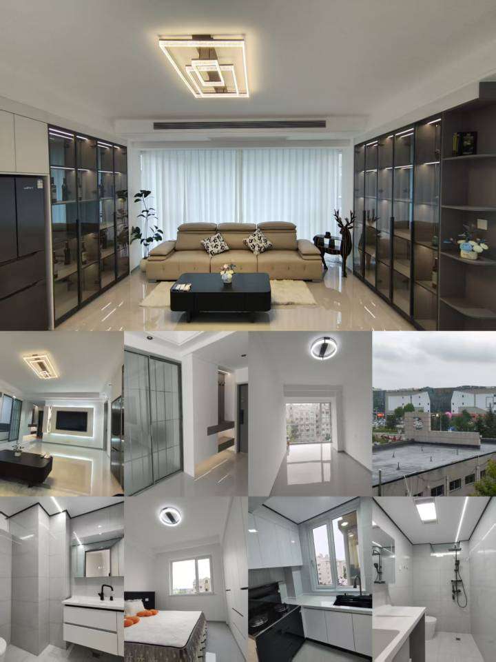 全屋豪华品牌精装修,一天未住,超大落地窗,视野采光无敌,冠珠陶瓷砖、智能甲级防盗门、美的集成灶、海信中央空调、75寸小米语音电视机,智能语音窗帘,品牌智能马桶,智能晾衣架,全屋兔宝宝品牌(ENF级)板材衣柜。品牌家电