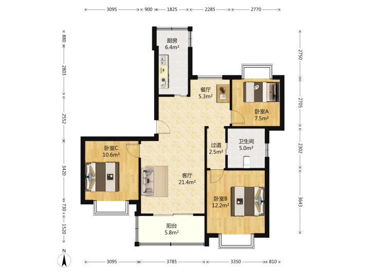 户型:三室一厅